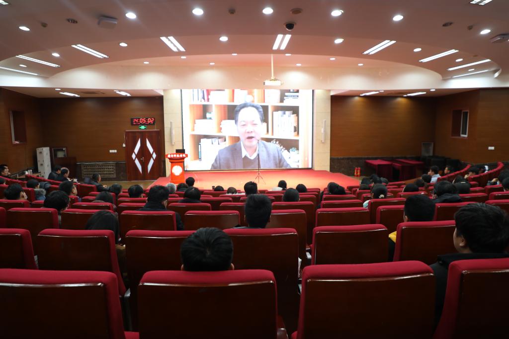 本次学术报告是我校第九次教学工作会议学术报告周的第二场报告。校党委副书记刘宝君,党委委员、党委统战部部长宋新刚,全体处级干部及学生代表线下参加报告,全体教师线上参加报告。报告会由刘宝君主持。