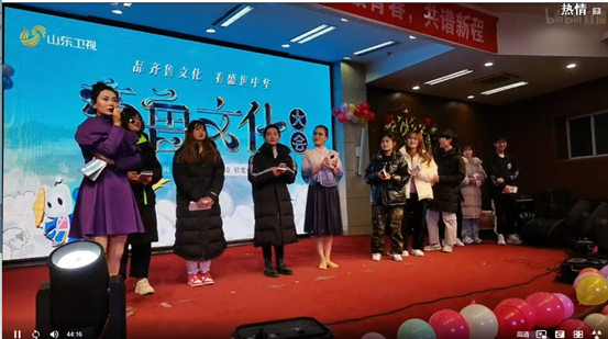 齐风鲁韵,辞旧迎新。为迎接即将到来的元旦佳节,丰富学子精神文化生活,进一步弘扬齐鲁文化,12月26日下午,新利18全站app 大学生记者站2022年元旦晚会暨山东卫视《齐鲁文化大会》青葱视频进校园活动在章丘校区学术报告厅成功举行。活动通过B站平台进行全程直播,除内场互动、演出,还在一餐东门、齐鲁文化长廊设置游戏闯关区、外场文艺展演等,吸引众多学生参与。