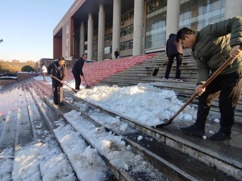 温暖服务,党员在先。11月9日,学校机关党委第一党支部、第十一党支部组织全体党员在图书馆北门广场联合开展扫雪活动。党委书记王玉华以普通党员身份参加。这是学校“我是党员,我帮你”,党员干部“真心办实事、服务惠师生”系列活动的一个缩影。学校注重发挥党员的先锋模范作用,在教师党员、学生党员中也先后组织系列主题服务活动,坚持“群众事无小事”原则,从细微处见真章,为师生办实事、办好事。
