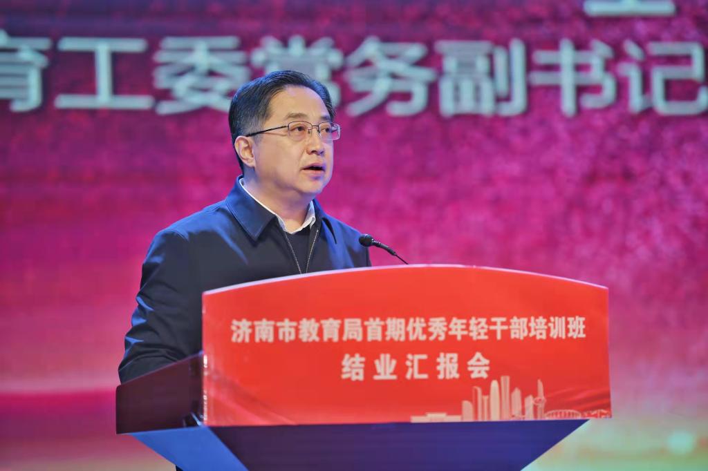 济南市教育局首期优秀年轻干部培养工程是市教育局深入贯彻市委“新时代年轻干部选拔培养工程”精神,促进年轻干部成长成才的创新举措。会上举行了颁发结业证书、学员课题、攻坚项目、个人展示汇报、专家点评、集体朗诵等一系列活动。