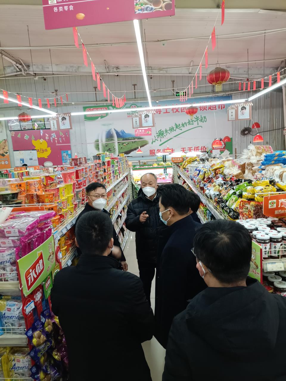 在了解情况后,王玉华结合当前疫情防控形势,对超市加强物品储备和货源补充提出三点要求。一是要保证供应。能够保证至少一个月的生活物资储备,特别是快餐类食品,能够随时满足师生日常需求,不能断货、缺货,确保做到及时补货;二是不要抬价。要保持价格平稳,不能随意抬价,积极做好各项服务保障工作;三是要及时消杀。要按照疫情防控要求,认真做好物品消杀工作,并做好记录,确保物资安全。