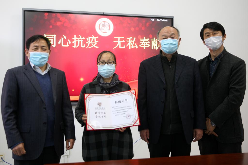 为助力学校疫情防控工作,我校许海丽老师捐款2万元整,为打赢疫情防控阻击战贡献自己的力量。4月4日下午,在章丘校区图书馆216会议室,举行了一个简短的颁证仪式,为许海丽老师的捐资行动颁发荣誉证书。学校党委书记王玉华,党委副书记刘宝君,党委委员、党委统战部部长宋新刚出席。