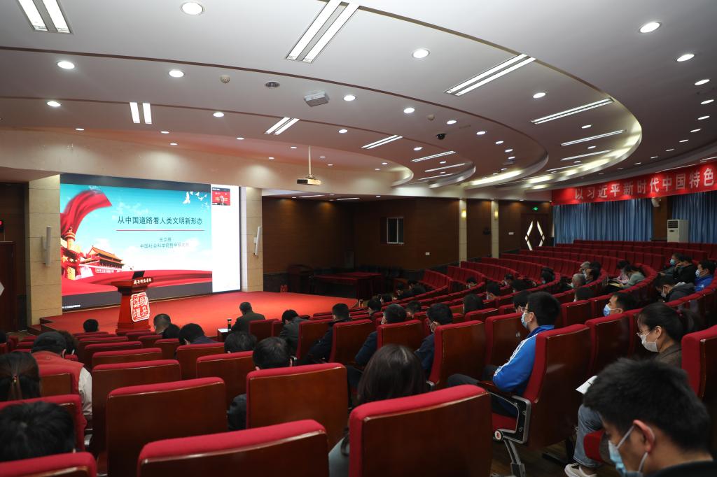 王玉华在主持时指出,党的十九届六中全会作出了“党领导人民成功走出中国式现代化道路,创造了人类文明新形态”的重要论断。增强“四个自信”、讲好中国故事,就必须深入领会人类文明新形态的内涵和优势。今天的专家辅导报告,有助于我们进一步深化学习“七一”重要讲话精神、党的十九届六中全会精神。