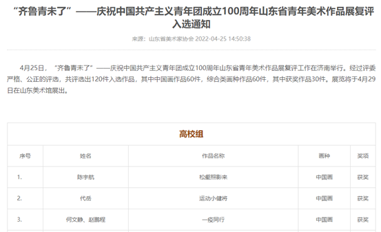 喜报!我校作品入选《齐鲁青未了·庆祝中国共产主义青年团成立100周年山东省青年美术作品展》