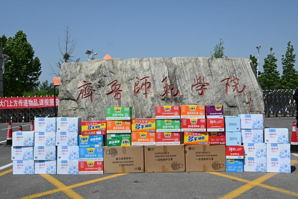 携来思雨润物,化作春风吐艳。5月3日上午,中共章丘区委统战部副部长李胶东,致公党章丘区支部主委、济南盛苑花卉工程有限公司总经理李全信等一行6人向我校捐赠了医用口罩6000只、纯净水20箱、方便面20箱等疫情防控物资。学校党委副书记刘宝君及生命科学学院负责人在学校东门接洽了来访,并接受了捐赠。