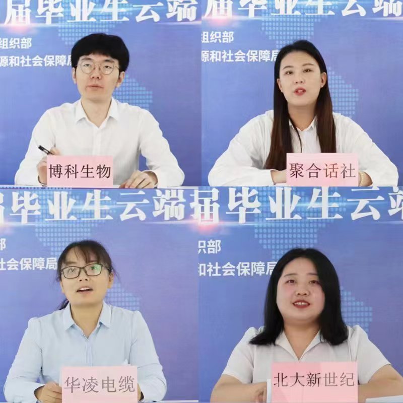 在接下来的企业宣讲环节,通过“岗位介绍-线上答疑-直播投递”三位一体式的实时互动,精准实现了用人单位与求职者需求对接。博科生物、华凌电缆、聚合话社、北大新世纪学校4家用人单位负责人空降“青年人才成长示范岗”主会场直播间,进行岗位介绍,上演“抢人大战”。毕业生纷纷上线,就薪资待遇、工作情况、发展空间等关心的问题进行互动交流,现场气氛热烈,在线观看人数2000余人,4000余名毕业生注册并投递简历。