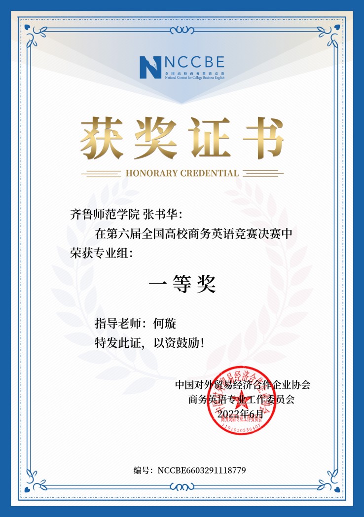 经过激烈角逐,我校学生共126名选手晋级全国决赛,35名参赛选手在全国决赛中脱颖而出,分别荣获国家一等奖1人,二等奖6人、三等奖28人。其中,专业组张书华获得全国决赛一等奖,专业组赵静、杨爱民、唐潇、刘晓萌获得全国决赛二等奖,非专业组初晓明、麻永祺获得全国决赛二等奖。外国语学院石磊、何璇等商务英语教研室老师获得竞赛优秀指导教师奖。