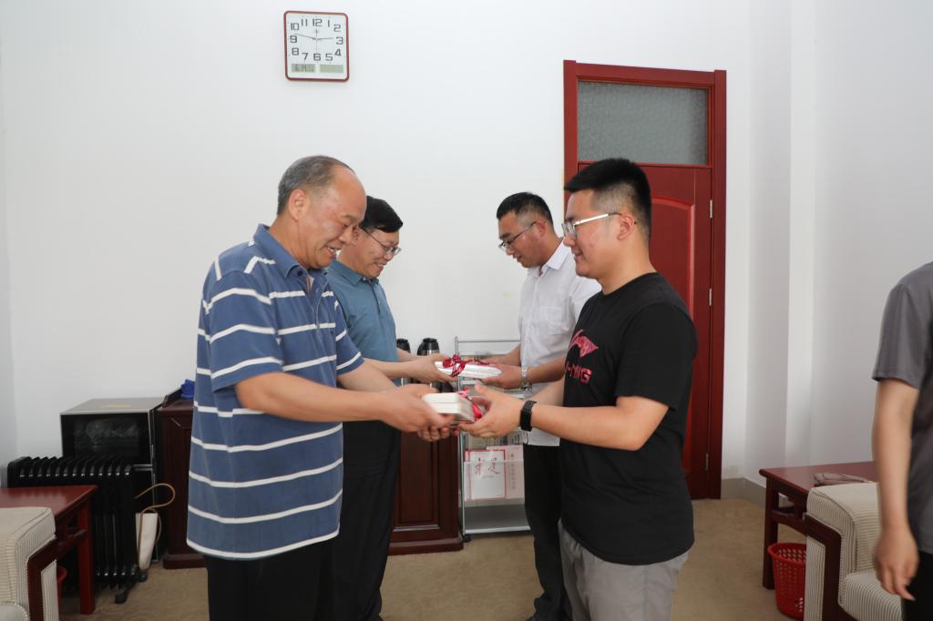 交谈中,王玉华、林松柏向毕业生代表们表达了殷切的期望和祝福,并赠送了山东人民出版社出版的《跟着共产党走——一本给青年人看的简明党史》一书,寄语勉励他们:希望同学们赓续齐鲁师院的光荣传统,秉承“博学明道 崇德象贤”的校训,坚定不移听党话、跟党走,把自己的小我融入祖国的大我、人民的大我之中,立志民族复兴,不负韶华,不负时代,不负人民。