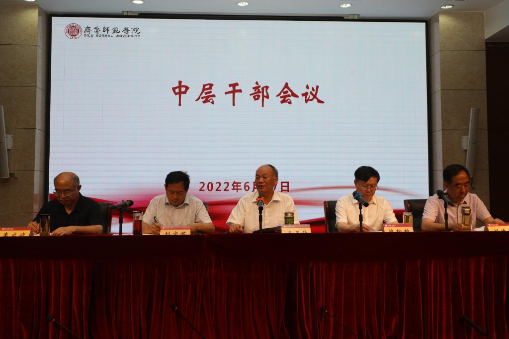 6月17日上午,学校在章丘校区召开中层干部会议,总结2022年上半年工作,部署安排2022年暑假及下半年重点工作。学校领导、党委委员及全体中层干部参加会议。