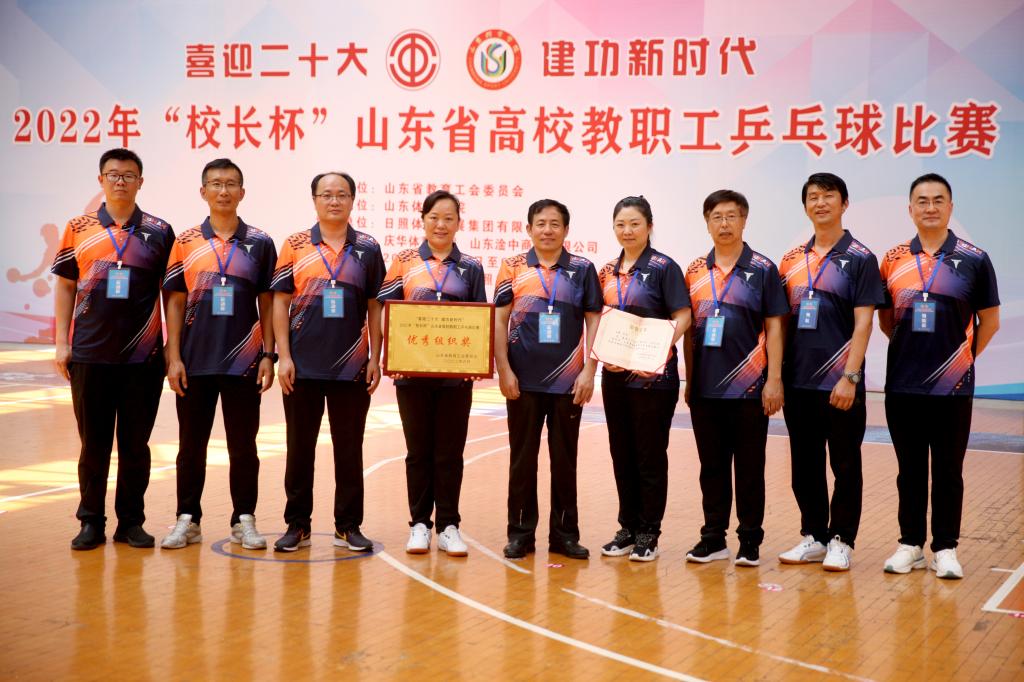 6月20号至24号,我校教工乒乓球代表队在日照举行的2022年“校长杯”山东省高校教职工乒乓球比赛中获得突破性佳绩。本次比赛由山东省教育总工会主办,山东体育学院承办,以“喜迎二十大,建功新时代”为主题。来自全省63所高校的64支代表队,包括93名校领导在内的559名运动员共赴此次乒乓盛会。我校党委副书记刘宝君带领6名教职工选手组成代表队参加了比赛。