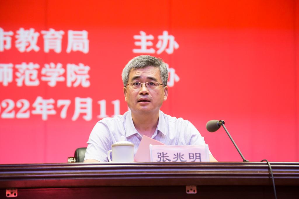 张兆明代表新利18全站app 讲话。他指出,本次启动仪式暨集中培训是对115名第四期东营名师名校长人选进行培养培训的动员会,也是导师与学员的第一次见面会;培训坚持需求导向和实践导向,导师指导和集中培训交叉进行,通过培训,让名师名校长人选提升专业理念,学习课题研究的理论与方法,组建学习共同体,解决实践中的新利18全站luck 问题。他提出,各位名师名校长人选要珍惜和充分利用集中培训的时间,通过不断学习,提高自身的师德修养和专业素养;要勤于思考,带着问题培训,主动向授课专家请教,主动与导师研讨,请他们给予针对性的指导,名师名校长之间加强交流,相互启发,共同成长;承担培训任务的基础教育服务中心要严格执行培训方案,积极认真地做好培训管理,保证高质量完成培训工作,实现培训目标。