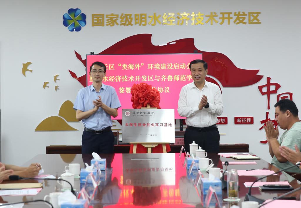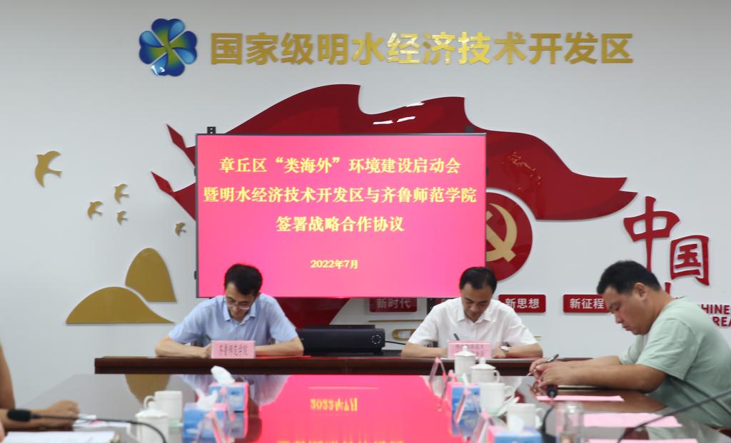 7月19日,章丘区“类海外”环境建设启动会暨新利18全站app 与明水经济技术开发区签署战略合作协议活动顺利举办。济南市外办党组成员、副主任李茂鑫,明水经济技术开发区党工委副书记、主任黄波、副主任郎咸颖出席活动。我校有六个产学研合作项目集中签约,新利18全站app 党委委员、副校长孙正参会并致辞,合作发展办公室及相关学院负责人参会。