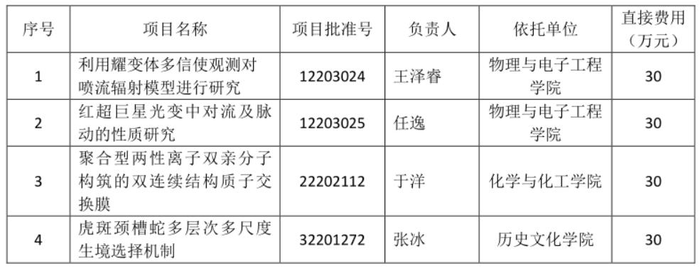 近日,国家自然科学基金委员会发布了《关于2022年国家自然科学基金集中接收申请项目评审结果的通告》,据通告2022年度我校共获4项青年科学基金项目立项,立项数量保持良好态势。具体立项名单详见附表。