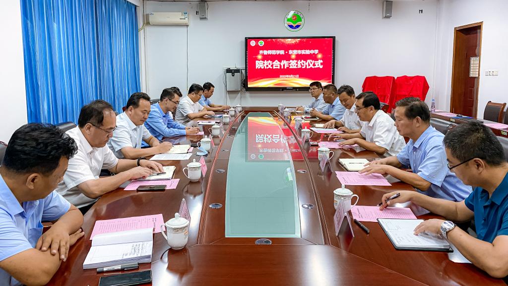 孙正在致辞中指出,通过本次合作,与东营市实验中学共建人才培养、教学研究、学科建设、教师培训等协同发展共同体,充分发挥院校合作功效,加大职前职后一体化的培养力度,深耕基础教育,提升协同育人效果。进一步强化基础教育领域的优势,利用先进的管理思想、教育理念和师资优势,与东营市实验中学一起,探索院校协同新模式,积极创造条件,进一步创新合作机制,推动双方教育共建的深层次、多领域合作。