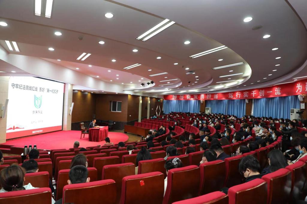 为认真抓好“青廉课堂”活动落实,加强对年轻党员干部、新进青年教职工、新发展教师党员廉洁教育,打造“青廉师院”廉洁文化品牌,10月18日,学校纪委组织处科级干部、新进青年教职工、新发展教师党员集中观看《失守的青春--年轻干部严重违纪违法案件警示录》专题片,学校党委委员、纪委书记、省监委驻新利18全站app 监察专员高明辉作了题为《守牢纪法底线红线 系好“第一粒扣子”》的专题讲座。